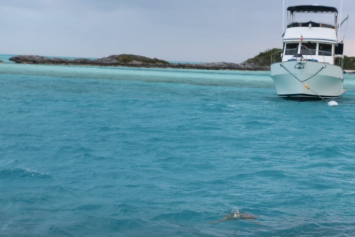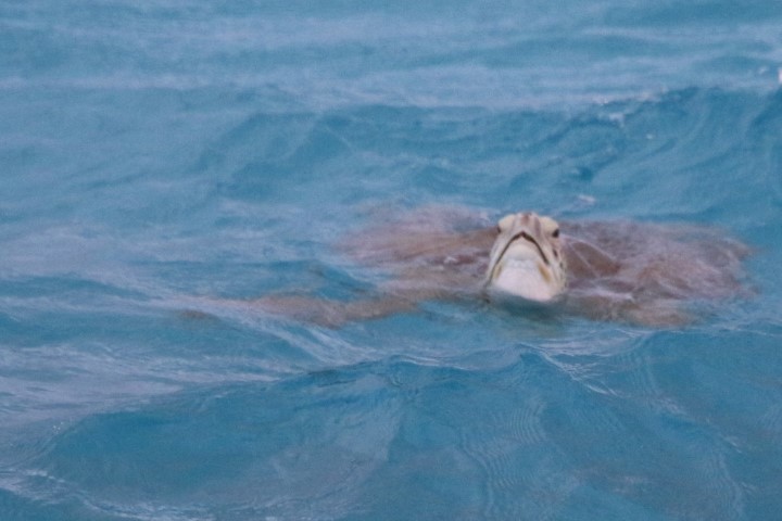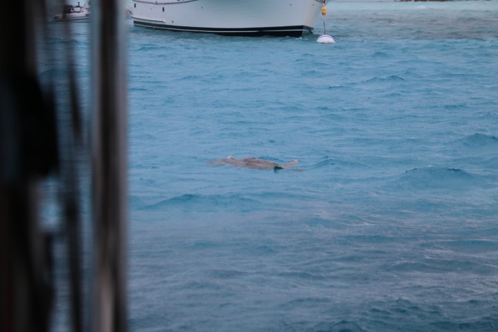 Und dann kommt der Aufreger des Tages: Zwei Schildkröten weiden wohl das Seegras-Feld unter uns ab. Immer wieder tauchen sie auf, holen dreimal Luft und sind dann wieder für Minuten unten. Michèle flimt, ich mache Foto-Jagd.