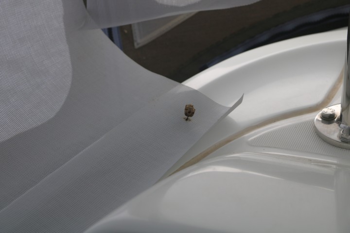 In den bald 4 Monaten ohne Besatzung hat RE eine große, neue Crew bekommen: Fliegende Kameraden und jede Menge Spinnen haben sich häuslich niedergelassen. Viele von ihnen werden nun den Fischen übergeben. Und in mancher unerwarteten Ecke finden sich dann auch Nester…. Siehe Foto!