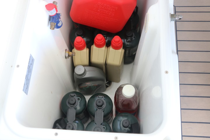 Doch muss ich einen kleinen Unmut zum Besten (Schlechten??) geben: Ich hatte alles Gas von Bord verbannt… Und ist in dem Gasfach nicht nur Benzin und 2Takt-Öl…