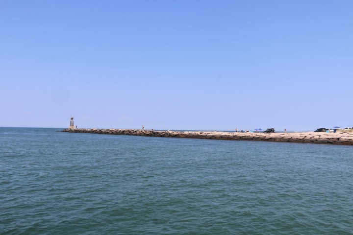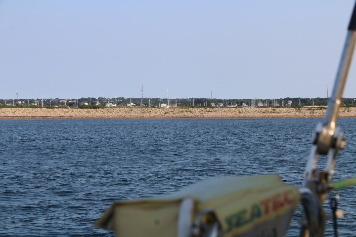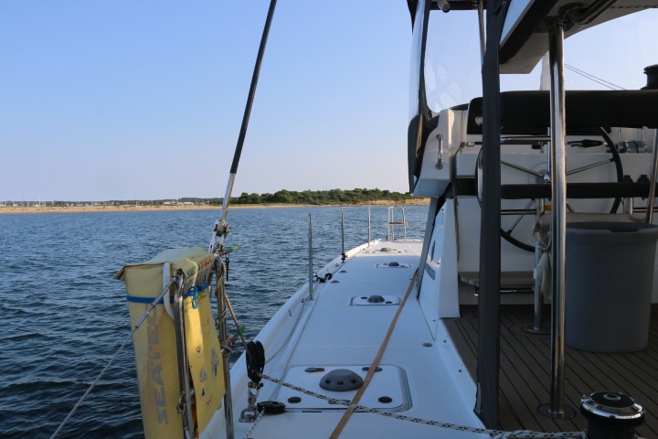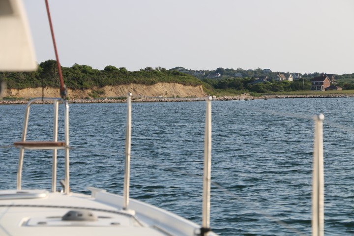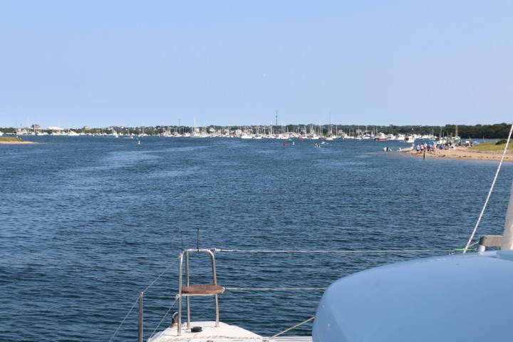 Um 17 Uhr laufen wir in den Great Salt Pond, Block Island ein. Eine unüberschaubare Masse an Booten liegt hier, sehr viele an der Mooring, einige im 3er Päckchen. An eine Mooring will Michèle nicht, den einzig noch akzeptablen Ankerplatz lehnt sie auch ab. So laufen wir wieder aus, rechts rum ans Ufer und ganz alleine auf weiter Flur, werfen wir den Anker. Schön ruhig – also fast. Liegen wir doch noch gut im Akustik-Kreis der Nebel-Tonne. Die hat eine kleine, wohltönende Glocke, die mit jeder sanften Welle angeschlagen wird. Ich mag das, aber wenn man darauf anders reagiert….