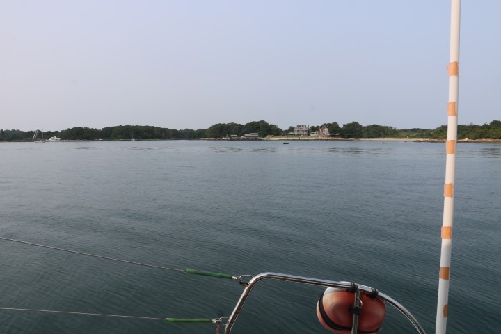 Und so fällt um 18:30 Uhr der Anker hinter oder vor – je nachdem, wie man es sehen will – Bull Island. Nach Norden bis Westen schützt uns Uncatena Island, nach Süden bis Osten Nonamesset Island. Lediglich aus Nord kann eine Welle hier rein laufen. (Klar, dass morgen NNO Wind ist!!??)
