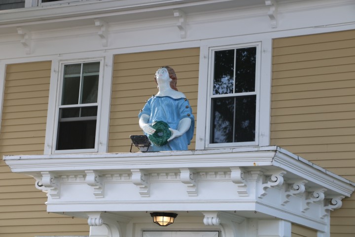 Aber wer interessiert ist, dem werde ich dann berichten, dass Captain Marion Augustine Perry, der Master des Schoners Rose Dorothea das Fishermens race 1907 gewann, das dann vom Bewohner diese Hauses (94 Commercial Street) als 66,5 Fuß Half-Scale-Modell gebaut und jetzt in der Public Library ausgestellt wird.