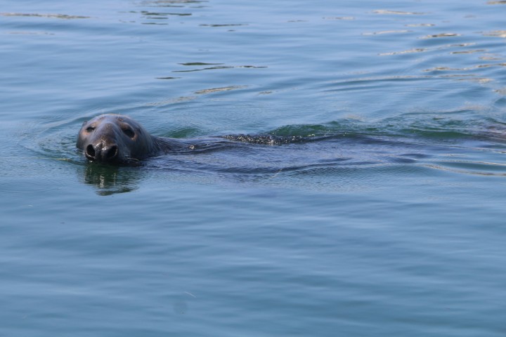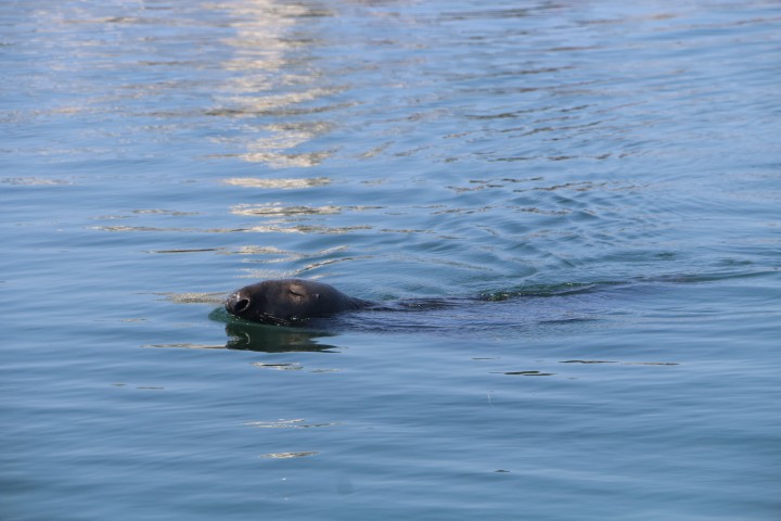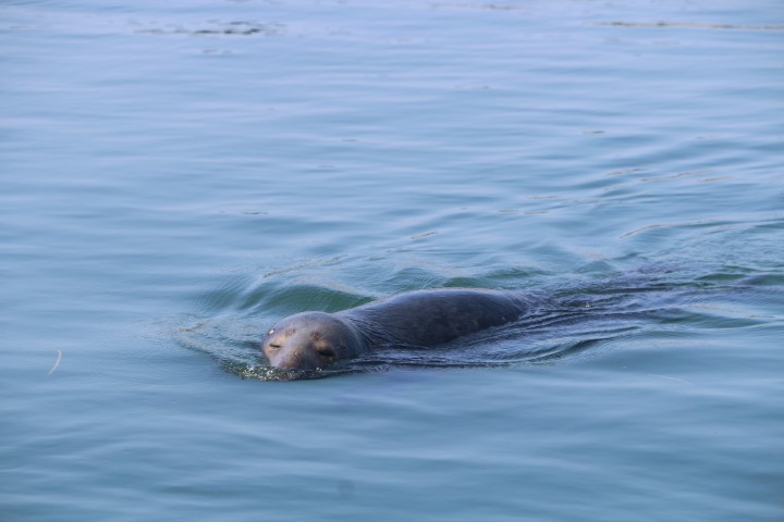 Und gleich beim Anlanden der erste Knaller: Eine Robbe findet uns interessant und hat auch noch Zeit, sich fotografieren zu lassen. Hier mitten im Hafen!