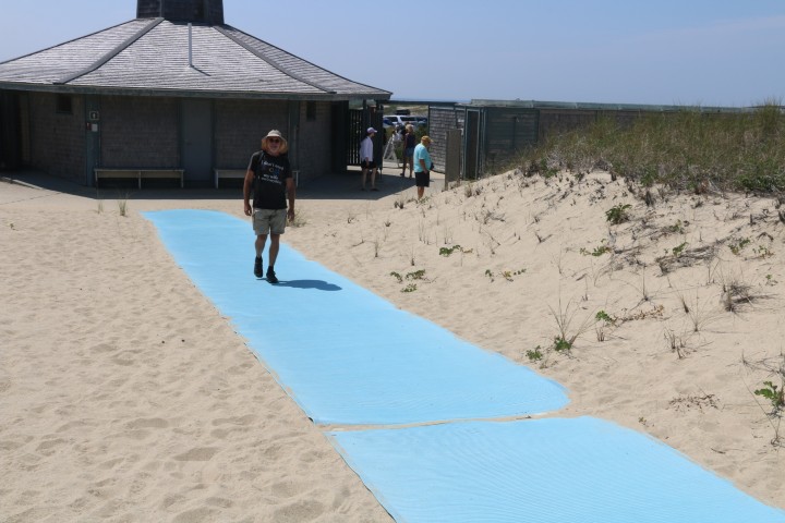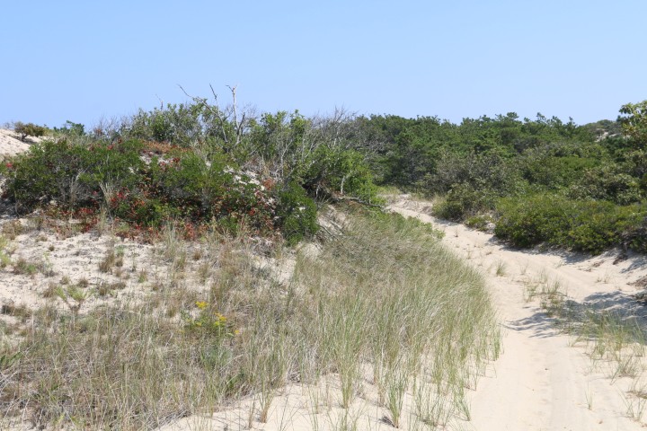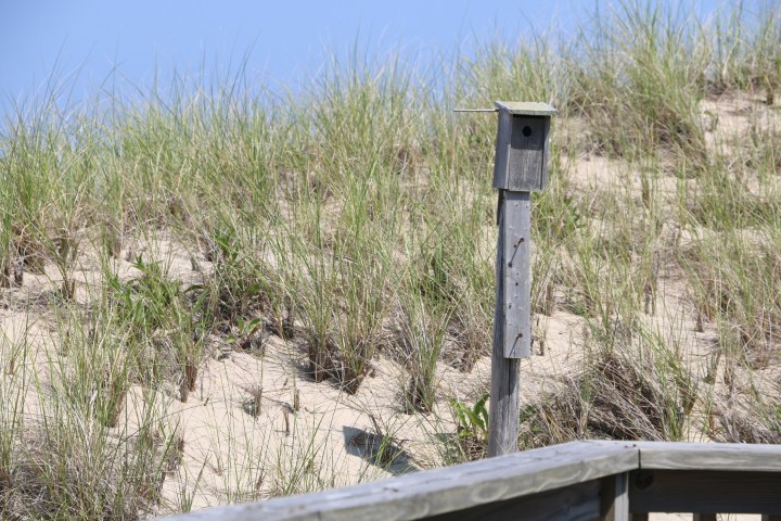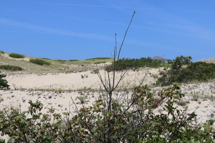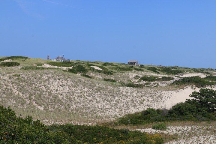 Ich habe entdeckt, dass es hier einen kostenlosen Bus gibt. Das muss genutzt werden! Wir könnten doch einen Spaziergang machen, bis zu ein paar Strandhäuschen, die lobend auf Maps erwähnt wurden. Und dann durch die Düne zurück zum Visitors Center, da hält der Bus dann auch. Guter Plan….