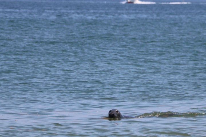 Gleich am Strand gibt es einige Sommerfrischler, aber nach 100 Metern haben wir den Strand für uns alleine. Die Hose ziehe ich nach kurzer Zeit aus, allerdings erst nachdem sie ordentlich nass geworden ist. Ich schaffe es nämlich nie den Wellen rechtzeitig auszuweichen! Es ist wirklich ein schöner Strand und die Seelöwen lassen auch nicht lange auf sich warten. Nur die Wale, die lassen sich bitten! Und erscheinen gar nicht. Den linken Fuß schaue ich mir lieber nicht an, es fühlt sich wie eine Brandblase an, aber das kann ja wohl nicht sein! Hatte ich noch nie.