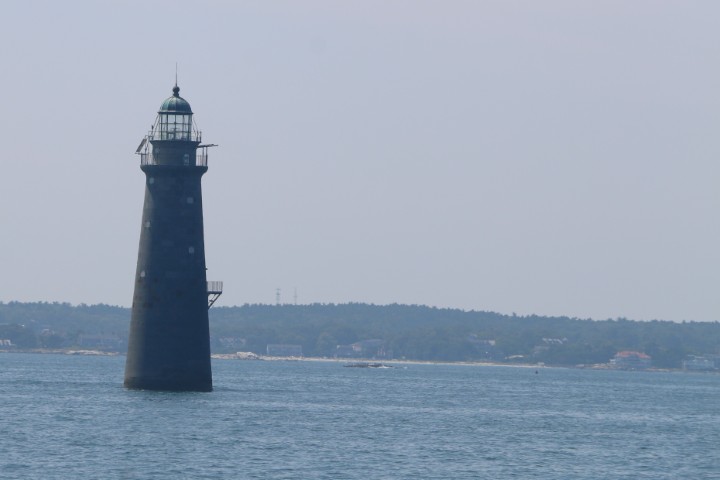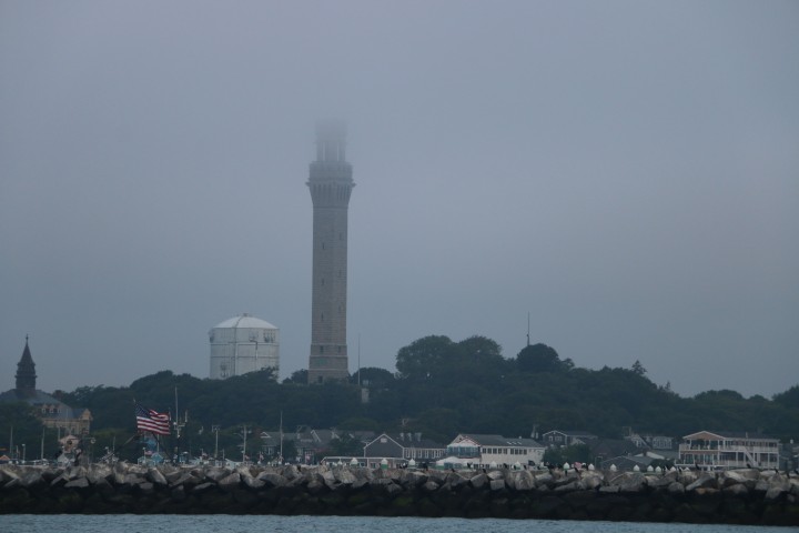 Morgens um 5 Uhr ist die Welt – nein, nicht in Ordnung sondern – grau! Gut, die Sonne ist für ein paar Minuten im Horizont sichbar, während wir den Anker hieven. Dann verschwindet sie im Grau. So wie auch der Pilgrim-Turm. Die ersten Meilen um Long Point motoren wir, es geht gegen den Wind, da segelt es sich schlecht...