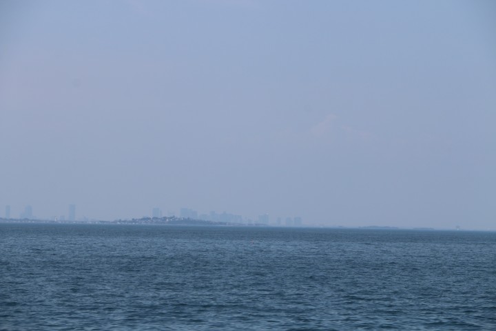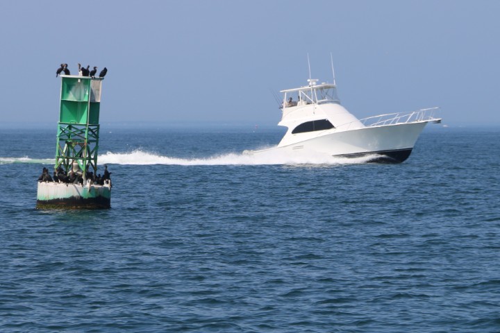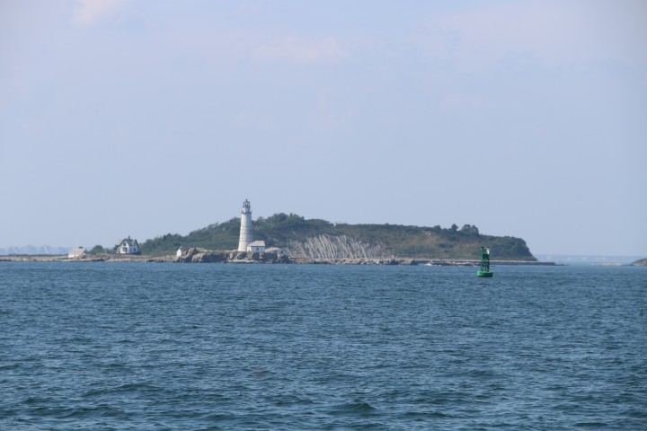 Gegen 15 Uhr schält sich die Skyline von Boston aus dem Grau des Horizonts. Wie kurven durch die Inselwelt vor Boston. Und dann kommt die letzte Meile. Segel runter, Motor an und in den inneren Hafen von einlaufen. Gleich das erste Ankerfeld wollen wir nehmen. Doch da sind so viele – leere – Moorings, dass es schwierig mit dem Abstand würde. Also – an eine Mooring. Das Seil der Mooring erzählt mir mit seinem Bewuchs, dass schon viele Wochen, ja Monate hier niemand mehr gelegen hat. Also – wir nehmen niemanden seinen Platz weg.