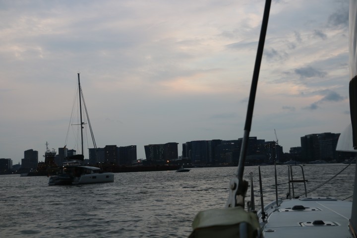 Ne Stunde später erscheint dann die VITAMIN SEA. Die haben heute einen enormen Schlag gemacht und sind von Marthas Vinyard in einem Rutsch hier her gekommen. Klar, dass da (endlich mal wieder) einen Sundownder auf RE gibt. Und viel zu erzählen, haben wir uns doch das letzte Mal in Hamburg / Wedel kurz vor Ostern gesehen….