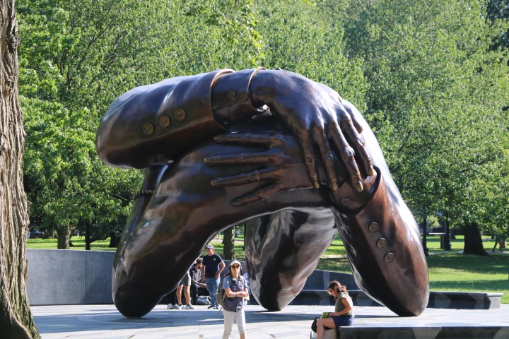 Ja – man ist schon stolz, dass die Unabhängigkeit und damit „Amerika“ hier „entstanden“ ist. Die Stadt ist gut darauf eingerichtet, dass überall zu zeigen. Eine doppelreihige Pflaster-Linie in Rot zieht entlang der einzelnen Punkte. Ich komme irgendwann durcheinander und bringe es erst beim „Nachlesen“ zusammen: Die City-Hall, das State-House, die verschiedenen Meeting Houses und das dann noch in Old und New. Das Boston Massacre und klar – die Boston Tea Party. Dazu dann noch etliche Kirchen. Und Monumente und Statuen gibt es auch ne Menge…