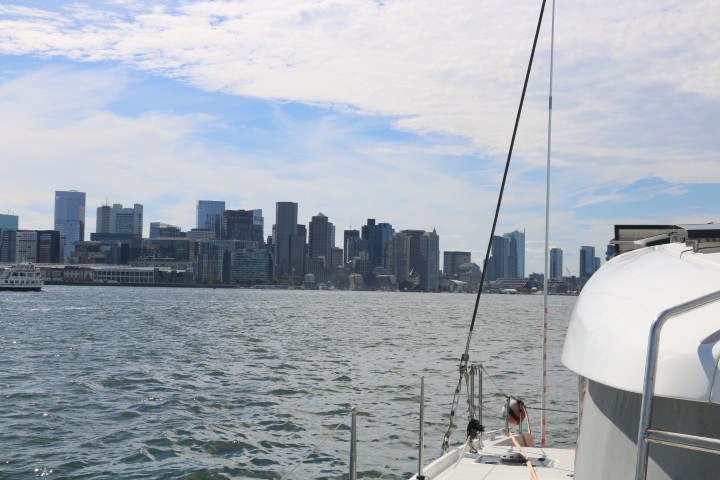 Boston wird kleiner und kleiner, aber die Luft ist klar, es bleibt die Skyline bis zum Sonnenuntergang sichtbar. Die Nachtroutine heute mal etwas anders. Ich bleibe bis kurz nach 22 Uhr auf, am Kap von Gloucester steht eine ordentliche Kursänderung an und bis dahin ist mit dem Verkehr nach Boston zu rechnen.