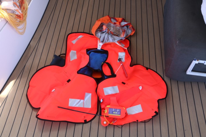 Doch beim Check der Rettungswesten mache ich einen Fehler und löse sie aus. Es knallt, es zischt und der Platz auf der Bank wird eng. Denn das verda…. Ding hat ein recht großes Volumen – aufgeblasen. Und: Das PBL ist aktiviert. Nicht im TEST-Modus. Nun heißt es schnell sein und das Ding deaktivieren. Gut, dass ich gerade die Bedienungsanleitung gelesen hatte… Habe es aus geschaltet, bevor es die erste Meldung abgesetzt hat! Puh!