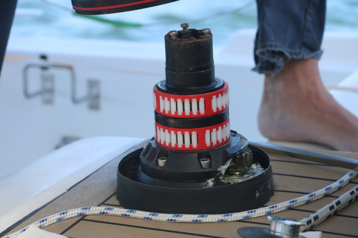 Bald darauf geht es auf die VITAMIN. Peter hat seine Fallen und Schoten noch nie ausgedreht. Machen wir mal. Und dann gleich noch die Winschen warten. Sehr gut - das steht schon eher mehr als ein halbes Jahr auf meinem Programm. So warten wir dann die VITAMIN und dann die RE Winschen.