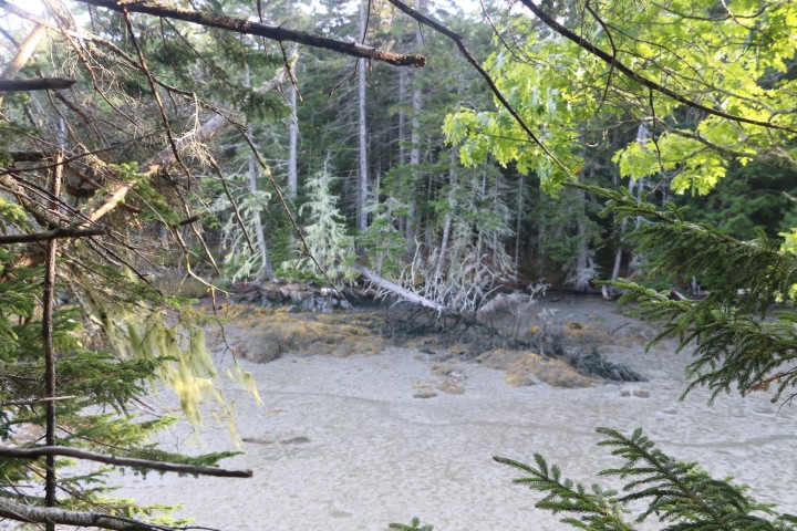 Ankern und Wandern: Vom Ankerplatz zum Tracy Shore Preserve Trail, dann zum Seal Cove Preserve, da jeweils die Wanderwege abgelaufen.