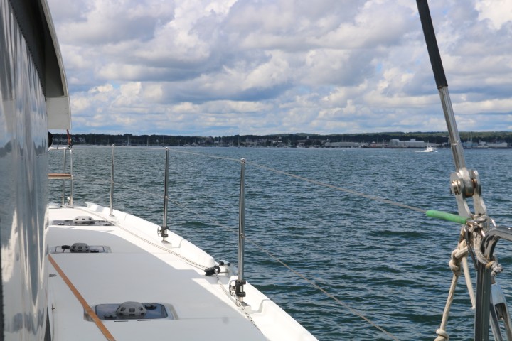Das Wetter ist schön, die Kurverei um die Bojen bekannt. Dreieinhalb Stunden später fällt der Anker vor Rockland. Eine etwas größere Bucht, aber insgesamt gut geschützt. Die Ankerkette bekommt bei 20 Meter einen Reiter (25 kg Bleigewicht). Das sollte auch bei stärkeren Winden halten. Denn wir müssen ja jetzt von Bord und werden heute Abend wohl nicht zurückkehren.