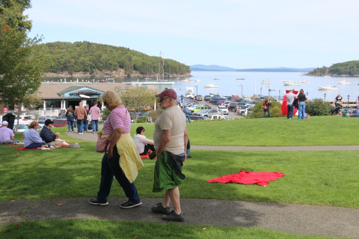 Wir fahren an Land: Der ganze Ort ist mit Kreuzfahrern besiedelt. Auf der einzigen Wiese ziemlich direkt am Anleger, sitzen sie zu hunderten auf roten Decken und picknicken. Picknicken Lobsterrolls vom Laden direkt nebenan. Wahrscheinlich gibt’s auf so einem Kreuzfahrtschiff nicht genug zu essen. Außerdem müssen die gefangenen Lobster ja auch vertilgt werden; die Lobsterfallen sollen sich ja rentieren….. und uns nerven!