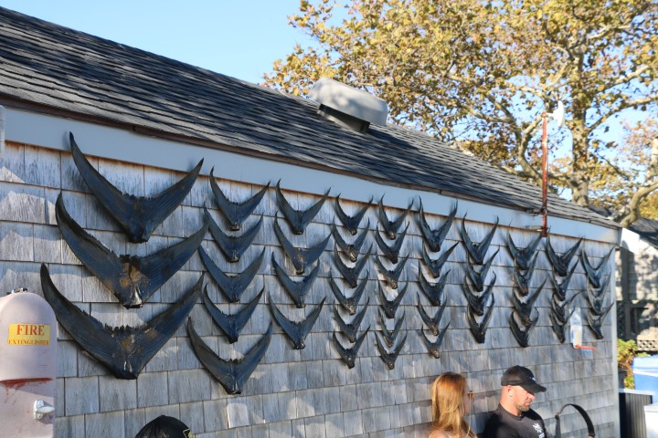 - Thunfisch-Schwänze als Trophäen des Touri-Fischerbootes