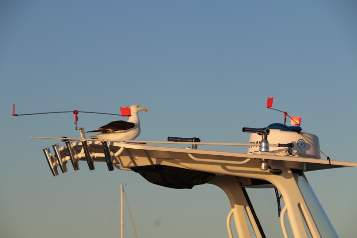 - Mövenabwehr auf den Booten: Zwei drehende "Windräder" versprechen Erfolg. Gut - nicht jede Versprechung wird gehalten...
