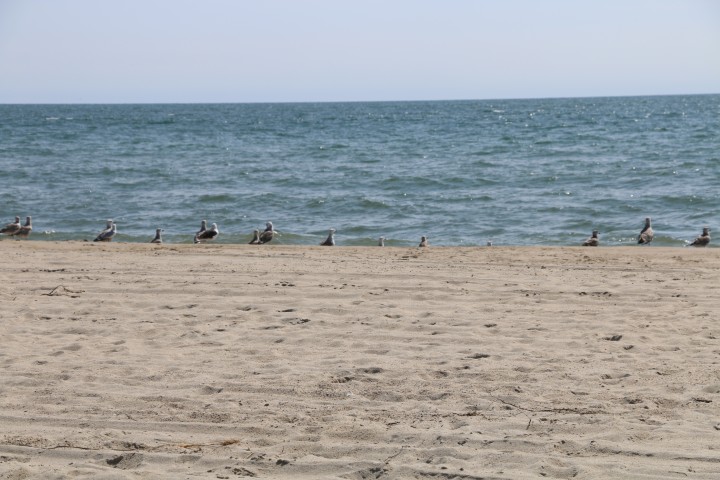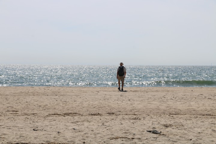 An der Atlantikseite gehen wir bis an die Wasserlinie und sehen einen großen Robben-Bullen. Daneben tauchen hin und wieder kleine Köpfe auf. Eine Frau mit zwei Hunden kommt, wirft ihre Kleidung hin und stürzt sich in die Fluten. Mich schauderts. Weiß ich doch, dass das Wasser deutlich unter 20° hat. Ihre Hunde sind zwiegespalten. Einer traut sich am Ende dann auch… Ich fühle mit dem anderen!
