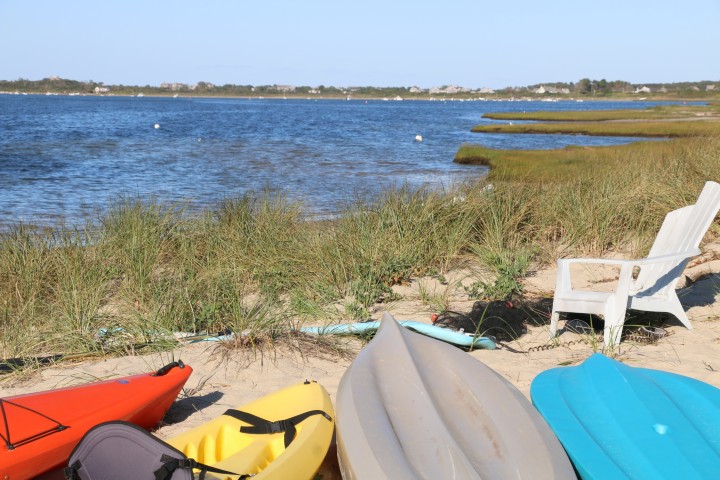 Zurück in Nantucket Town gönnen wir uns erst mal ein Café – natürlich in „unserem“! Und dann machen wir eine weitere Bustour – mit dem kostenlosen WAVE-Bus fahren wir noch an die westliche Spitze der Insel. Nach Madaket. Da ist nicht viel. Ganz knapp über „tote Hose“. Deshalb wandern wir noch raus nach Smith Point. Da ist nun wirklich gar nichts mehr. Selbst die Straßen sind nur noch Sandwege. Aber immerhin denke ich dran, einige Fotos zu machen. In dieser – sehr großen – Bucht wollte ich heute ankern auf dem Wege nach Westen und Martha’s Vineyard, bevor Michèle mit der Bustour kam….