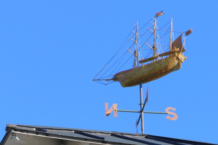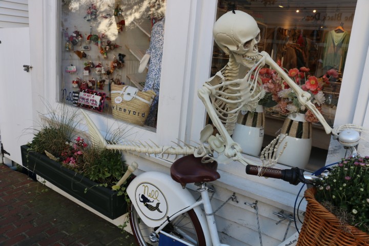 In Edgartown dann noch Fotos von den ortsangepassten Wetterfahnen und einem Halloween-Überbleibsel: Ein Mermaid-Skelett.