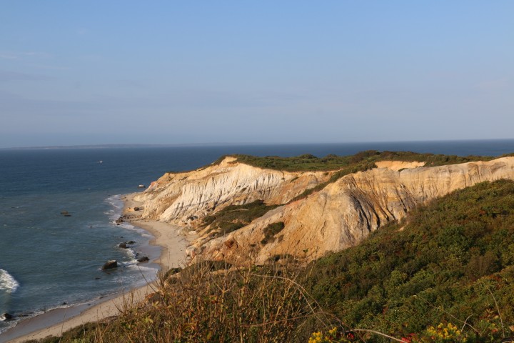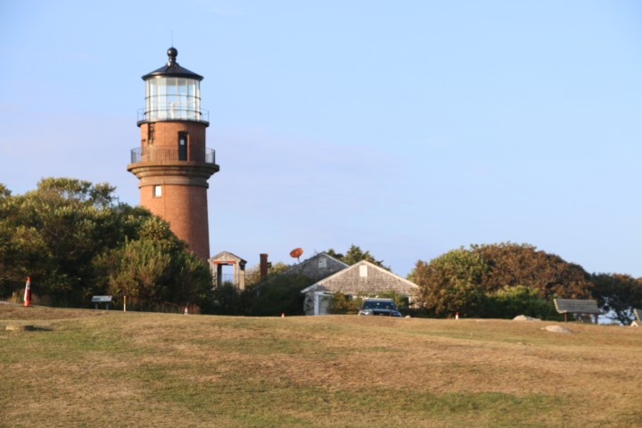 Ist Vineyard Haven zwar nicht ganz so ranzig (also für Martha’s Vineyard-Verhältnisse) wie Oak Bluffs, aber auch nicht so schön wie Edgartown, so ist die hiesige Sicht auf die Klippen sowie den etwas weiter entfernten Strand definitiv einen Besuch wert. Und der Leuchtturm, welcher auch im Film „der weiße Hai“ zu sehen ist, wird selbstverständlich auch besichtigt. Hier auf der Insel begegnet man übrigens auf Schritt und Tritt Poster, Postkarten und sonstigen Schnickschnack zum Film, wurde dieser doch vor 50 Jahren hier auf der Insel gedreht. Dieses Jubiläum wurde auch groß gefeiert.