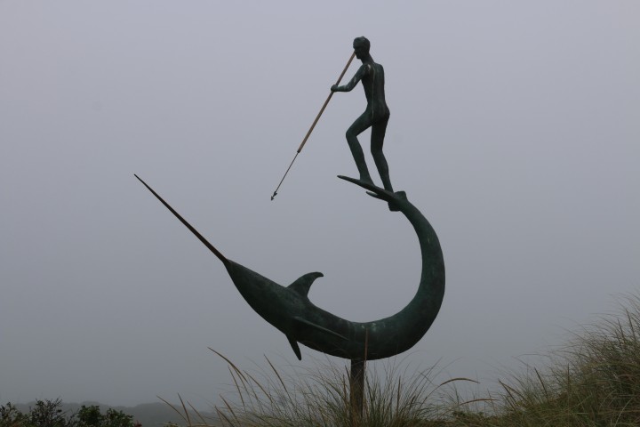 Was hier fehlt ist der von Guadeloupe bekannte Touren-Service, alle Drehorte des „Weißen Hai“ zu zeigen. Das ist wohl das Besondere an Menemsha – viele Hafenszenen wurden wohl hier gedreht! Und klar – jetzt zum 50-jährigen Jubiläum wird das auch ganz groß gehalten! Sind alle mächtig stolz drauf! T-Shirts, Kühlschrank-Magneten, Hai-Skulptur im Glas. Gibt es alles!