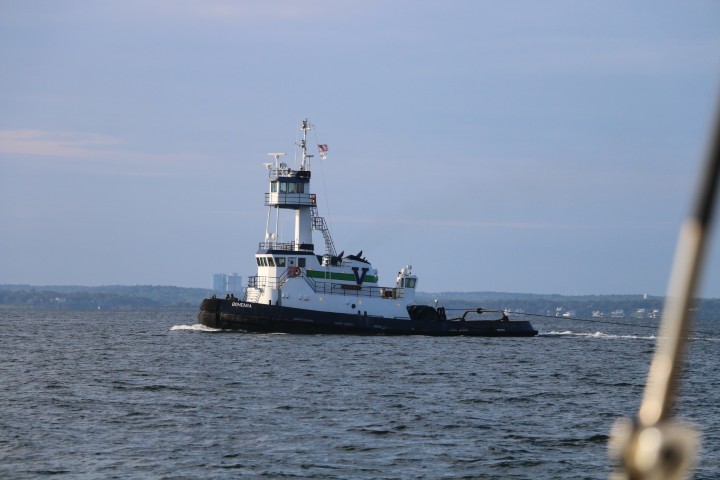 Nautisch erlebe ich ein unschönes Vorkommnis: Gegen 8 Uhr ruft mich der entgegenkommende Schlepper „BOHEMIAN“. Und dann höre ich, wie jemand anders in meinem Namen „Port to port“ verabredet!!! (Das heißt, wir nehmen uns an unsere jeweilige linke Seite, fahren also rechts.) Das ist zwar auch meine Absicht, aber wenn ich nun gepennt hätte – der Schlepperkapitän war ja nun im Glauben, alles ordnungsgemäß mit mir verabredet zu haben! Und RE wäre einfach weiter gefahren. Das wäre arg knapp geworden. Denn schnell mal ausweichen, das konnte der Schlepper nicht, hat er doch einen ganz schönen Brocken hinter sich am Haken!
