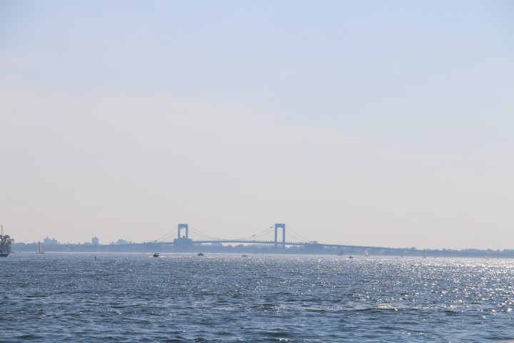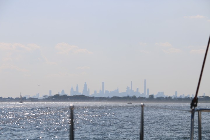 Enthusiastisch erkläre ich Michèle, als sie aus der Koje kommt, dass die ersten Hochhäuser am Horizont zu sehen seien. Doch dann kommen die immer schneller näher und werden als Stamford, Connecticut identifiziert. Doch dann ist es so weit: Da gibt es kein Vertun – das ist NYC (New York City)!