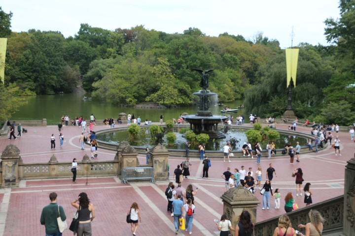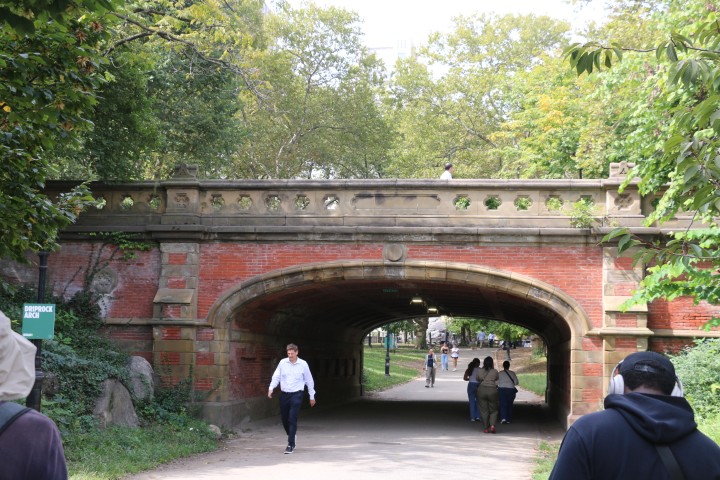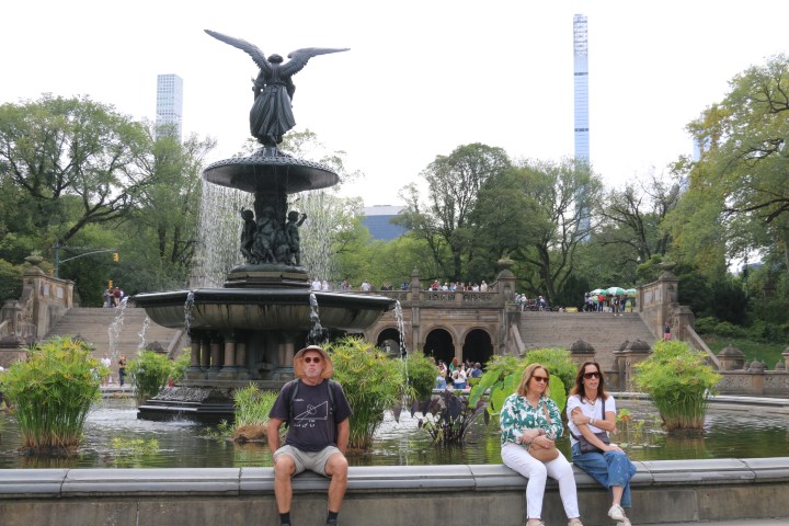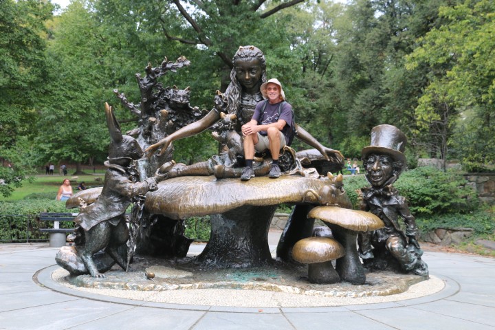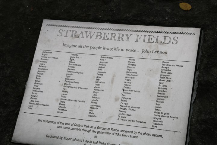 Wir schaffen heute nur das südliche Drittel. Sehen und begehen solche bekannten Plätze wie „Angel of the Waters, Bethesda Terrace“ und den für Modellboote gebauten See „Conservatory Water“. Klar – und es segelt auch ein Boot darauf! Dahinter „Alice in Wonderland“, eine Skulptur… Über Brücken und unter Brücken, am Baseball-Feld entlang. Und auch zu Yoko Onos „Strawberry Fields (forever) mit Blick auf das Gebäude, in dem John Lennon ermordet wurde.