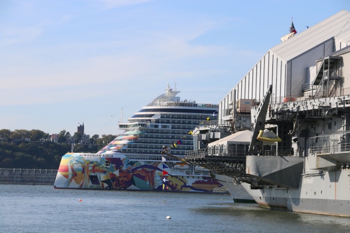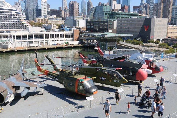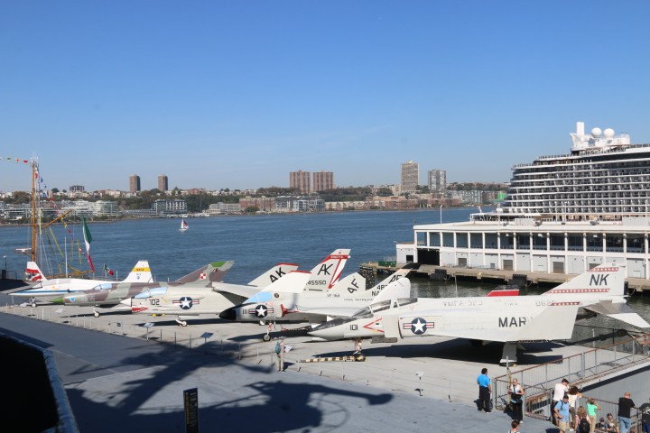 Von der Grand Central Station geht es zu Fuß zum Intrepid-Museum. Michèle hat begeistert zugestimmt, dann aber doch die Lust verloren. Es ist ein (alter, im II. WK gebauter) Flugzeugträger, die Intrepid. Hat einiges mitgemacht. Und ist nur zu einer Mischung aus Schiffs- und Flugzeugmuseum mutiert. Fast alle gängigen Flugzeugtypen der Navy (und auch Airforce) sind ausgestellt. Und eine britische Concorde, heute leider nur von außen zu besichtigen. Und die „Enterprise“, das erste SpaceShuttle. Das – wusste ich auch nicht – nie im Orbit war.