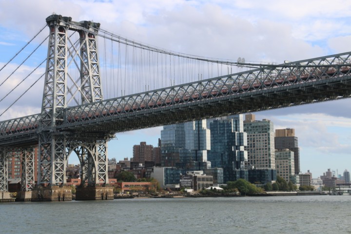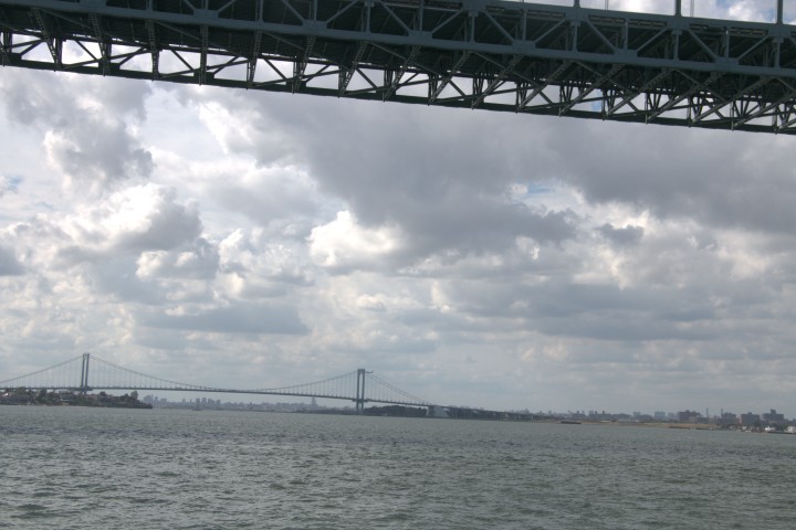 Die letzten Brücken haken wir schon im Angesicht von Madame Liberty ab. Dann ist die Brooklyn Bridge über uns und wir im „dichten“ Verkehrsgewühl des Hudson Rivers. Wer in Hamburg groß geworden ist, dem ist das in NY ziemlich leer. Doch hier sind wir nun auf dem Kreuzungspunkt, über den alle Fähren fahren. Und so sind wir umzingelt. Aber da die so viel schneller sind als wir, können wir sowieso nichts machen und fahren stumpf vor uns hin. Die umkreisen uns…
