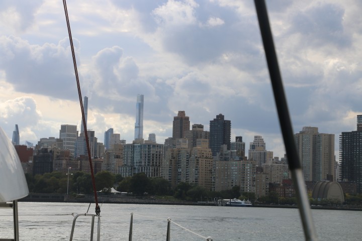 Denn gegen 12 Uhr geht es los. Ich habe ein „Road-Book“ aufgesetzt. Dreh- und Angelpunkt: Hell Gate. Eine Stelle im East River, an der weit über 5 kn Strom mit ordentlich Strudeln sein kann. Also lege ich da den Zeitpunkt auf „kleiner als 3 kn Strom“. Und das ist heute bis 11 Uhr und nach 15:30 Uhr. Michèle plädiert für die spätere Variante.