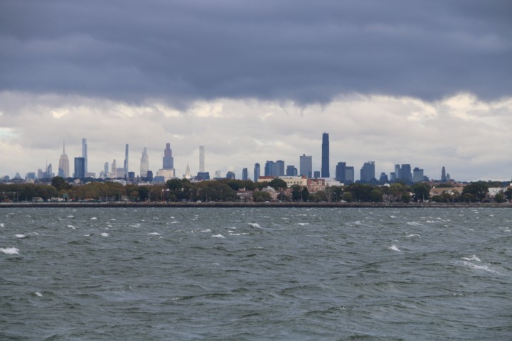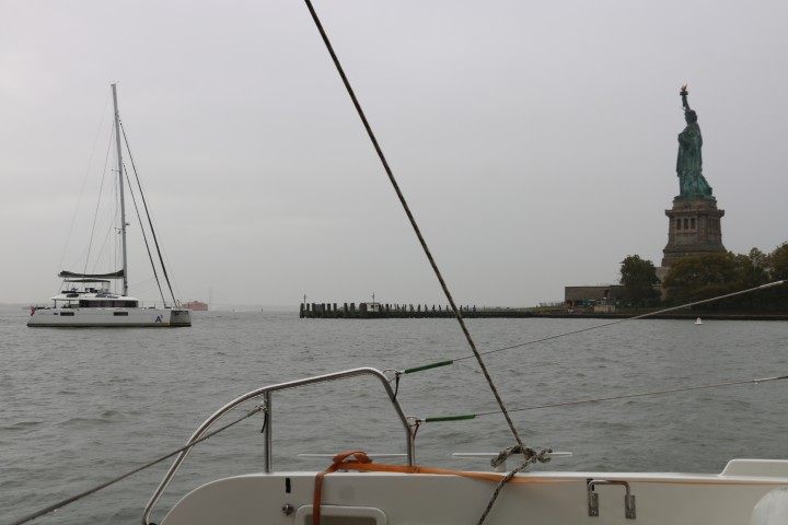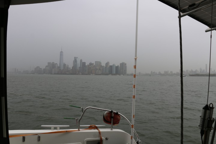 NY weint! RE will abfahren. Und es regnet Bindfäden – gut, das war vorhergesagt, aber trotzdem nicht lustig! Doch zunächst verschieben wir die Abfahrt nicht nur wegen des Regens! Wir sind umzingelt! 5 oder 6 Polizeiboote liegen um uns herum. Keins traut sich näher. Ob Trump gerade die Freiheitsstatue besucht? Nun – da hätten sie uns bestimmt weg gejagt. Also – zweitrangig.