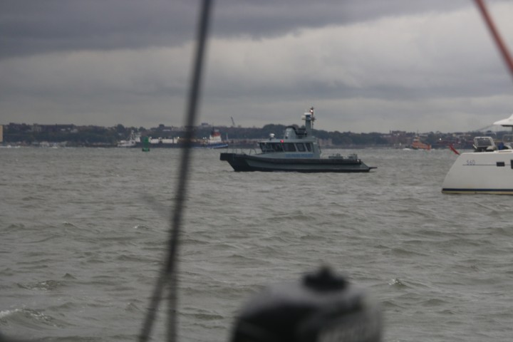 Endlich wollen wir nun wirklich los. Also winke ich dem nächsten – etwas über schlauchbootgroßem Polizeiboot zu. Das veranlasst die dann – so empfinde ich – sich auf ca. 100 Meter Entfernung zurück zu ziehen. Na gut – dann funke ich sie eben an. Ob das ok ist, wenn wir jetzt aus der Umkreisung ausbrechen und NY verlassen…