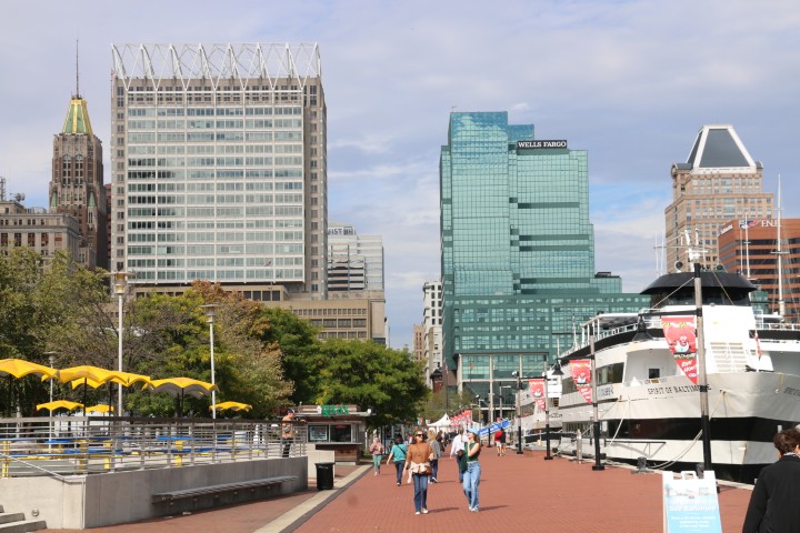 Wir sind auf der Höhe der Zeit! Unseren heutigen Tagesplan hat ChatGPT vorgeschlagen. Und wirklich: Der „Inner Harbor“ ist hier in Baltimore toll. Von unserem Ankerplatz direkt vor der „Baltimore Waterfront Prom“ führt bis zum Federal Hill Park eine Promenade direkt am Wasser lang. Sie mäandert so um den ganzen „Inner Harbor“. Das macht Spaß!