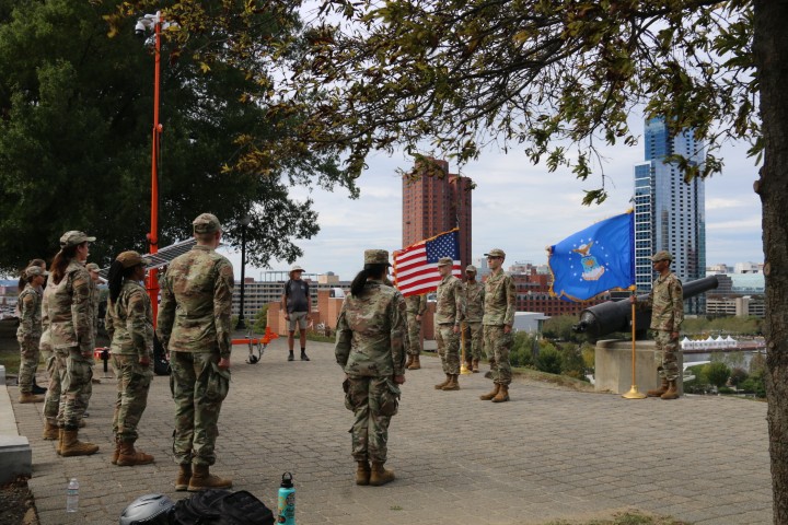 Im Federal Park laufen wir in eine Formation Luftwaffen-Soldaten. Und bleiben stehen. Es wird ein 1st Leutnant zum Captain befördert. War wohl nicht ganz überraschend, denn er hat die neuen Rangabzeichen dabei und „wechselt“. Nur die an der Mütze hat er vergessen. Hihihi! Klar, dass ich mich da nicht halten kann, ihm gratuliere und darauf hinweise.