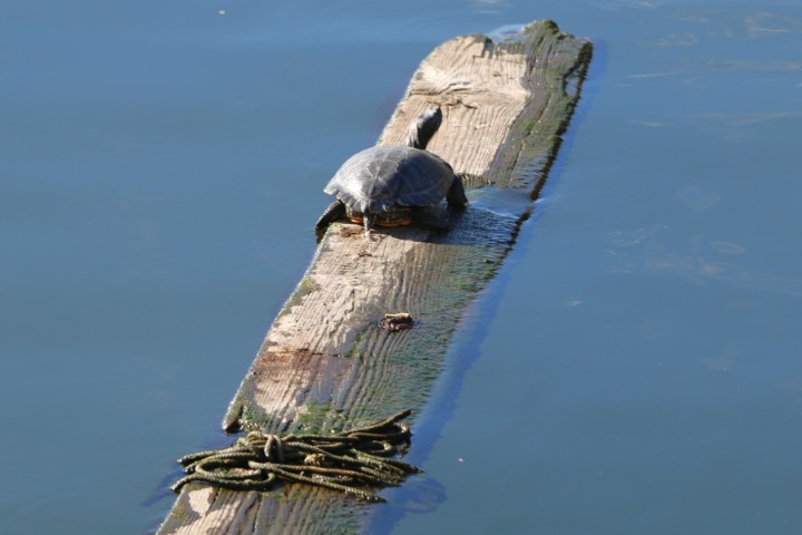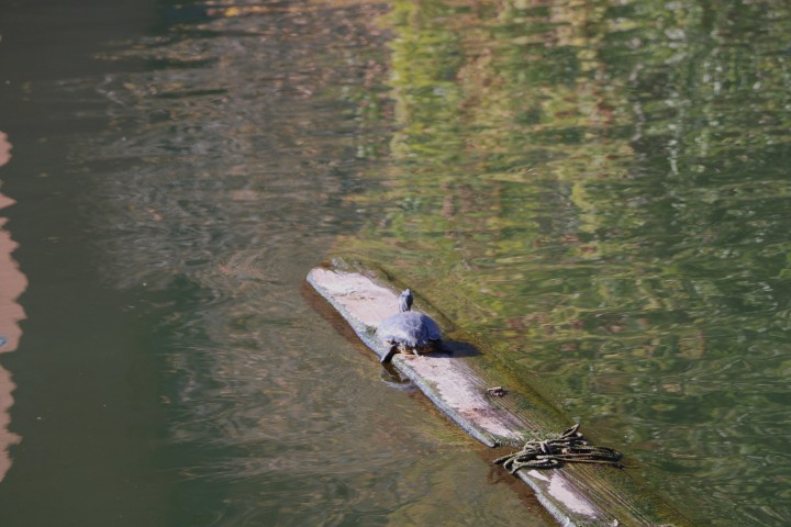 Die Schildkröte auf dem Brett entdecken wir übrigens nicht im See im Park, sondern im Hafen!