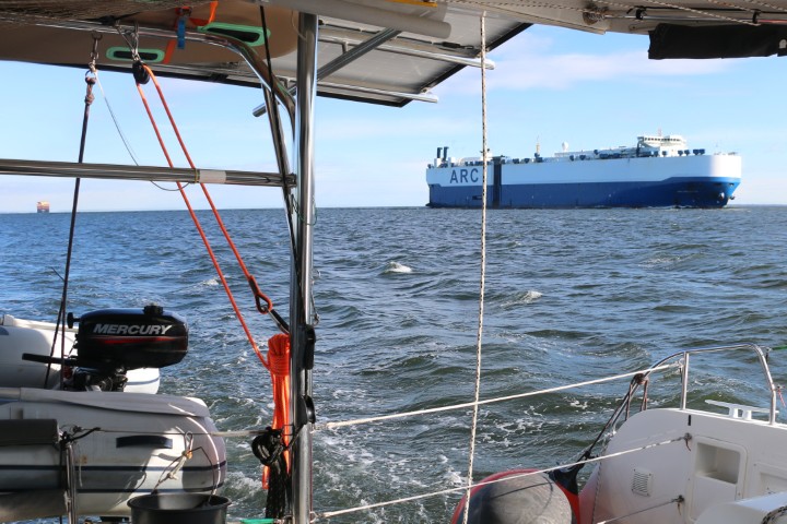 Doch was dann folgt, entschädigt für die frühen Mühen. Der Wind ist ordentlich. Zumindest, was die Richtung angeht. Die Stärke ein wenig zu viel. So wird das Logbuch voll heute mit den Bemerkungen, Groß gerefft, ausgerefft, Reff 2, zurück auf Reff 1. Und die Fock ebenso. Bis zu 33 kn Wind in der Spitze. Das ist schon ganz ordentlich. Doch – wir machen gut Fahrt. Am Ende des Tages trotz des langsamen Ankeraufs 6,4 kn Durchschnitt. Und wir kommen – das hätt ich mir nie träumen lassen, mit Sonnenuntergang auf der Ostseite von Point Lookout an. Damit haben wir die beste Position für die nächsten Tage mit Gegenwind!