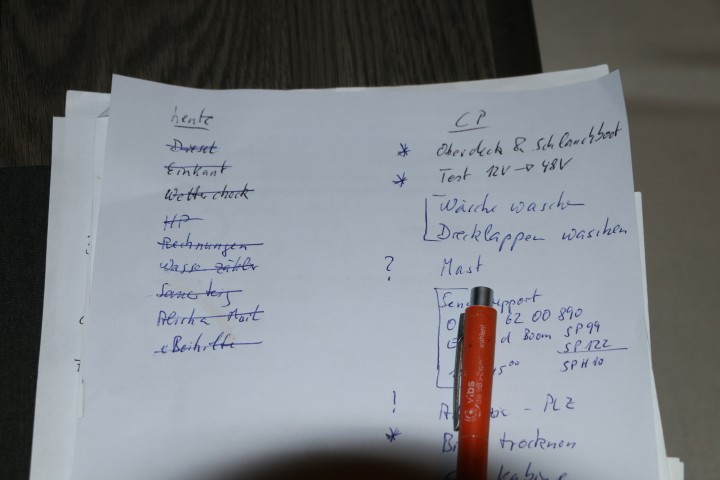 Abends geht es zum letzten Groß-Einkauf. Frische Sachen wie Salat und Gemüse werden gebunkert. Und dann ist RE voll ausgerüstet. Die Tagesliste ist abgearbeitet, alle Punkte sind durchgestrichen. Da kann ich gut schlafen!