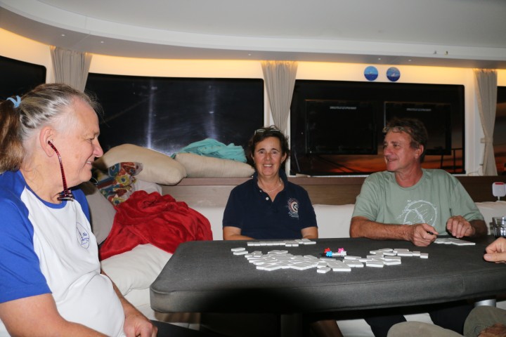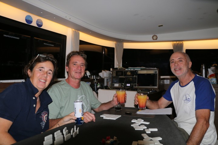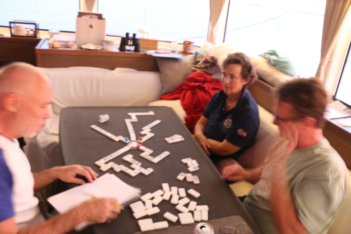 Und dann geht es wie üblich los: Segler haben eben viel zu erzählen. Und auch ohne Erzählen wird’s uns nicht langweilig, kramen wir doch „Mexican Train“ raus und spielen ein paar Runden. Haben mächtig Spaß und verwünschen die Steine! Den Sonnenuntergang haben wir dabei irgendwie verpasst. Draußen ist es stockfinster.