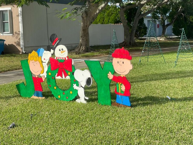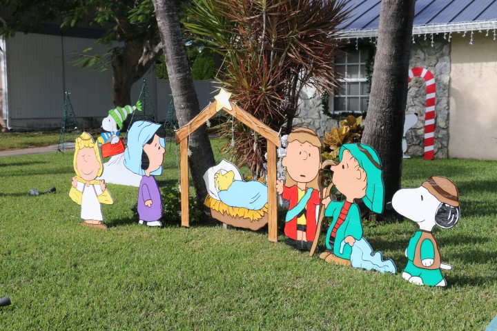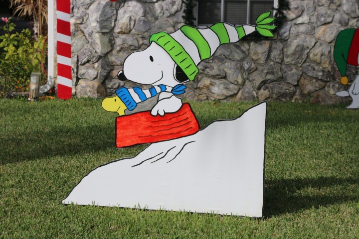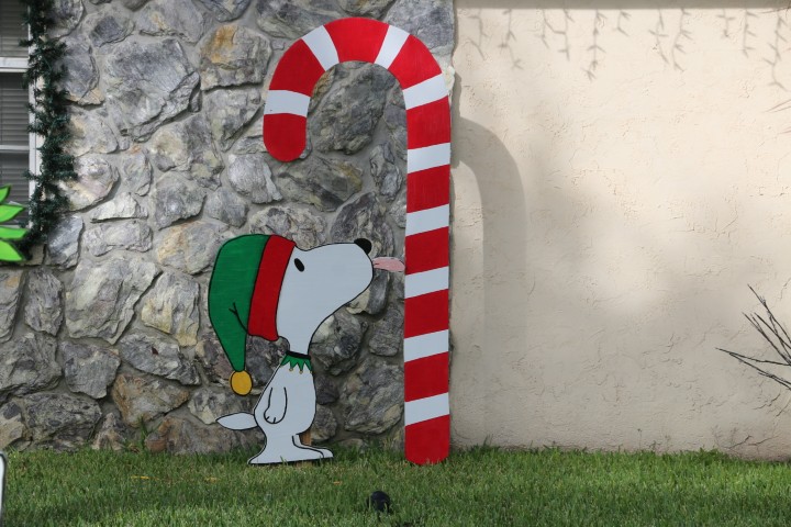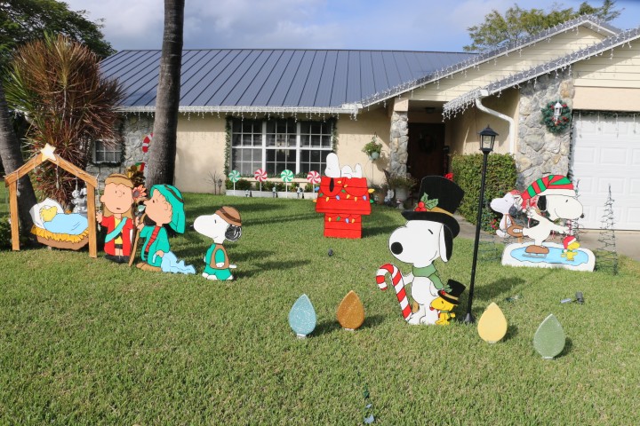 Halloween hat ausgedient. Nun ist Christmas - Schmuck in den Gärten angesagt. Einer hat es mir dann besonders angetan: Die Snoopy-Family macht hier Weihnachten!