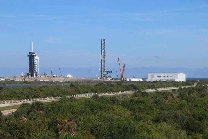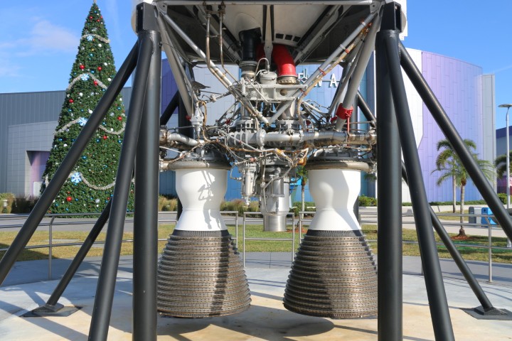 Am SC (Start Complex) 39 ist ein Test-Triebwerk ausgestellt. Richtig sehenswert dann eher der Blick auf die anderen Startplätze.