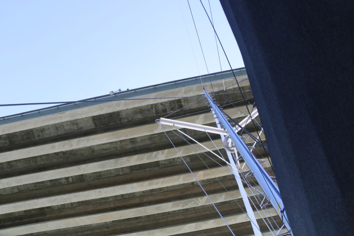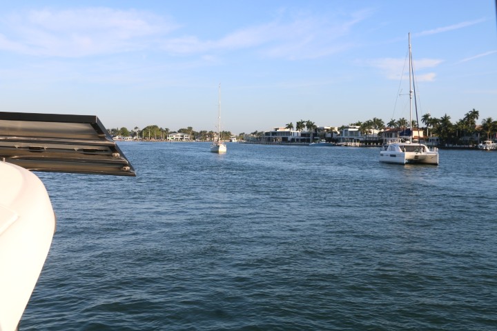 Um kurz nach 7 Uhr wache ich auf. Prima, Zähne putzen und Anker auf! Passt! Und dann klackert es neben mir: Auch der andere Kat nimmt Anker auf. Noch mal prima, wenn ich ins Treiben komme, dann ist mehr Platz. Passiert aber nicht. Und der ICW (Intra Costal Waterway) ist so frei, dass ich sogar in Ruhe die Fender einsammeln, den Anker putzen und ganz langsam fahren kann. Denn die Brücke macht um 08:00 Uhr auf. Beginn um 08:00:00 Uhr!