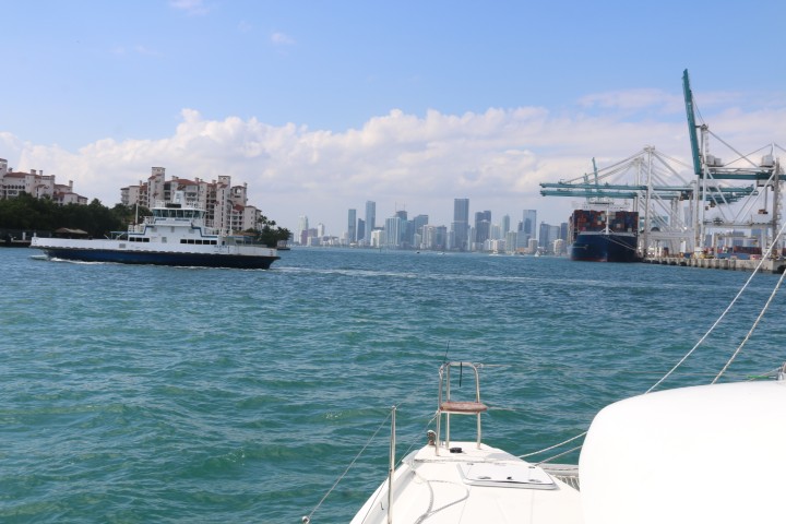 Dann kommt die Hafeneinfahrt Miami (MIA). Auch hier erwische wir ein ruhiges Intervall. Am Ende bietet das zwei interessante Stellen: Eine Barre mit Wassertiefen um 1,8 m. JOBBER geht lieber „außen“ rum, ich biete zwar an, die wirkliche Wassertiefe anzusagen, aber: Sicher ist sicher….