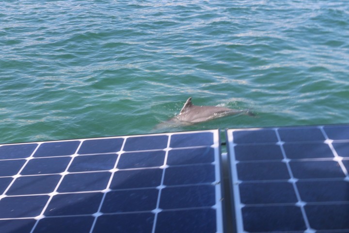 Die Hafenausfahrt FL und die Fahrt entlang der Küste bringt nichts Berichtenswertes. Wieder „schöne“ Küstenlinie, wieder Angler kreuz und quer. Die Jobber backbord querab schafft in den gut 3 Stunden keine 200 Meter Vorsprung. Ach ja – Schwachwind. Also – alles unter Motor. Grrrrr…..