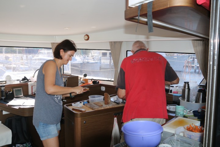 An Bord lange Diskussionen, was nun? Dann entscheidet Thomas, er hat in der Marina angerufen und fährt nun doch rein. Also – dann wir auch.
