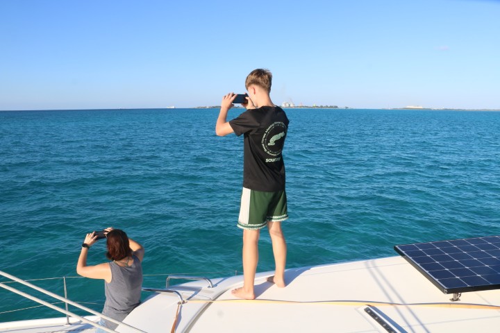 Carlos ist nun Steuermann und bringt RE dann raus aus dem Geschlängel. Nordwärts, wir müssen einmal rum um Great Harbor Cay, um Südost-Kurs auf die Exumas nehmen. Die nächsten 24 Stunden sind wir wieder in Bewegung. Leider unter Motor, denn bei 5 kn Wind, da segelt RE nun mal nicht. Und der Wind lässt dann nach Einbruch der Dunkelheit noch nach.