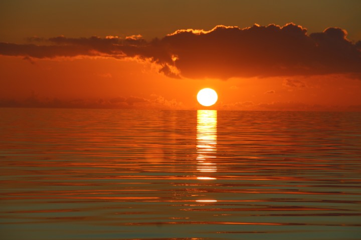 Der Tag beginnt mit einem wundervollen Sonnenaufgang, den aber nur Chrischan live sieht – weil er die Morgenwache hat. Zum Glück hält er dieses Ereignis würdig fotografisch fest.