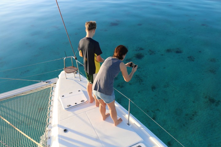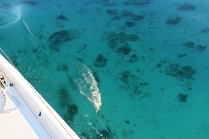 Als ich kurz nach 7 Uhr an Deck komme, strahlt Chrischan über das ganze Gesicht. Warum? Festhalten! Weil es WINDSTILL ist!!! Die Bahama Banks liegen spiegelglatt vor uns. Keine Wellen irritieren die Sicht auf den rund 4m tiefen Grund. Wir können Fische, Seesterne, Korallen, Wasserpflanzen und Co von Bord aus glasklar und quasi vor der Nasenspitze sehen. Wahnsinn!