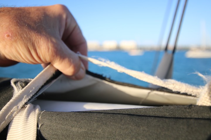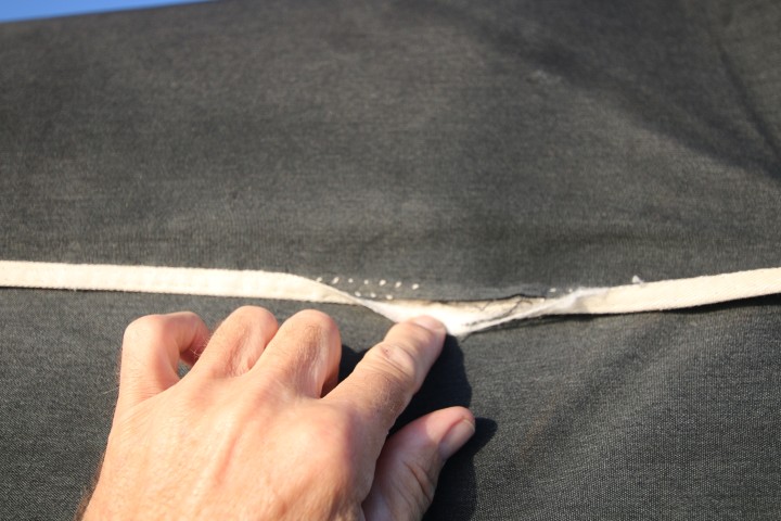 Den Nachmittag verbringe ich mit „Kleinarbeiten“. Und als die Sonne nicht mehr so arg ist, geht es aufs Dach. Das Lasy-Bag hat an mehreren Stellen den Saum nicht mehr so ganz richtig. Der muss nachgenäht werden. Und ich stelle dann fest: An einigen Stellen muss ich einen ganz neuen Saum machen. Nun – da sind noch ein paar Stunden für die nächsten Nachmittage!